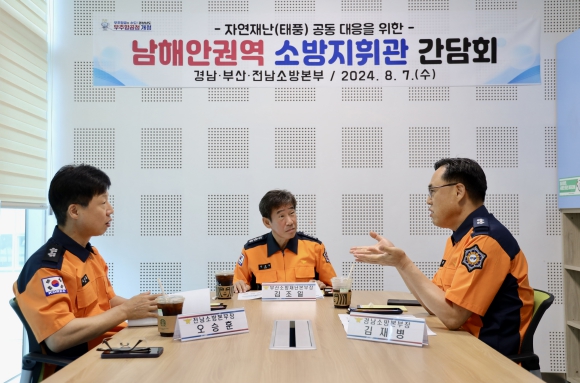 김재병 경남소방본부장, 김조일 부산소방재난본부장, 오승훈 전남소방본부장은 남해안권역 여름 대규모 자연재난 발생 시 시도 간 신속한 대응체계 구축과 유기적인 협조를 통한 대응역량 강화방안을 논의했다.