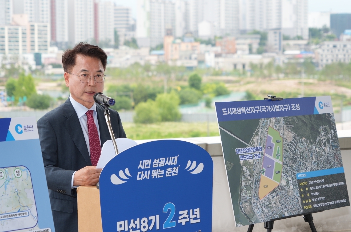 춘천시는 1일 오전 11시 역세권개발과 도시재생혁신지구, 고속철도와 GTX-B 등 교통의 요충지이자 미래혁신의 중심지가 될 춘천역에서 민선 8기 2주년 기자회견을 열었다.