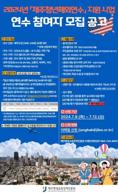 ▲ 2024년 제주청년해외연수 지원사업 연수 참여자 모집 공고문 |