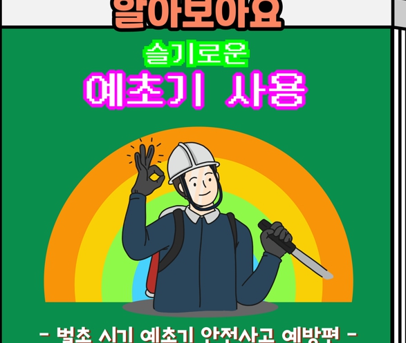 사고 빈도가 높은 예초기 사용 시 주의사항으로는 ▲작업 목적에 맞는 칼날 사용 ▲작업 전 위험요소 제거 ▲상단→하단,우측→좌측 방향으로 작업(킥백현상 방지) ▲15m 이상 안전거리 유지 ▲동력 제거 후 이물질 제거 등이 있다.