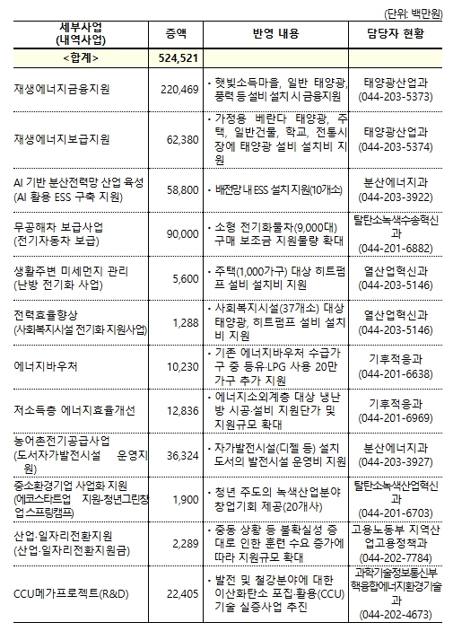 | ▲ 2026년도 기후에너지환경부 소관 추가경정예산안 편성 내역 |