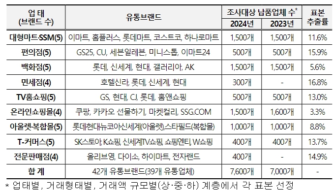 ▲ 대규모유통업자(42개 유통브랜드) 및 조사대상 |