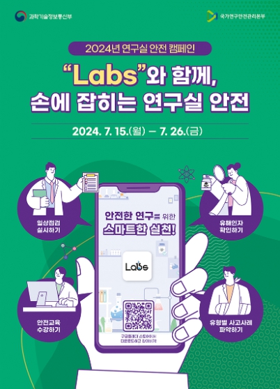 [뉴스서울] 과학기술정보통신부와 국가연구안전관리본부는 연구현장의 안전의식 확산을 위해 7월 15일부터 26일까지 “Labs*와 함께, 손에 잡히는 연구실 안전”이라는 주제로 '2024년 연구실 안전 홍보'를 추진한다.