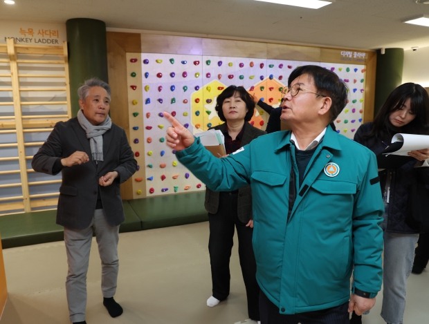 이날 박강수 마포구청장은 성인 운동 공간인 지하 1층부터 어린이 전용 공간인 지상 1층까지 구석구석을 꼼꼼히 살폈으며, 특히 휠체어 등 보장구 이용 구민을 위한 이동 동선과 경사면 등을 세심히 점검했다.