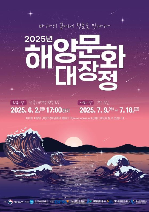 [뉴스서울] 해양수산부는 4월 25일부터 6월 2일까지 ‘2025년 해양문화 대장정’ 참가자를 모집한다.