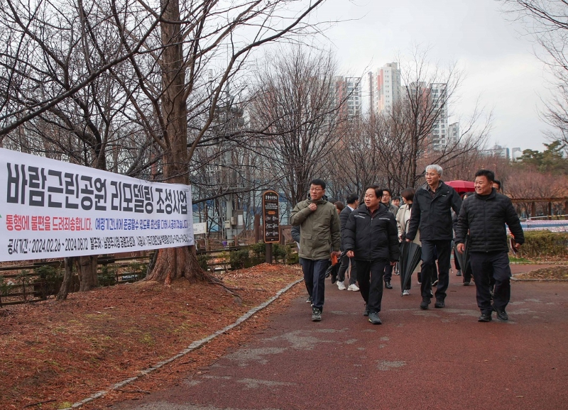 다음으로 주 시장은 다산동 바람근린공원 리모델링 공사현장을 찾았다. 해당 사업은 인근 아파트단지와 가운 초·중·고등학교 등 주변 환경을 고려, 전체 공원면적 중 주요구간 3개소를 리모델링 하는 사업이다. 사업비는 19억5천만 원이 투입됐다.
