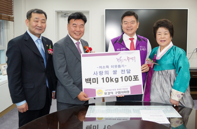 본 행사에 앞서 유강식 신임 회장은 취약계층을 위한 백미 10kg 100포를 동대문구에 전달했다. 일반화환 대신 받은 ‘쌀 화환’을 기탁한 것이라 더욱 뜻깊었다.