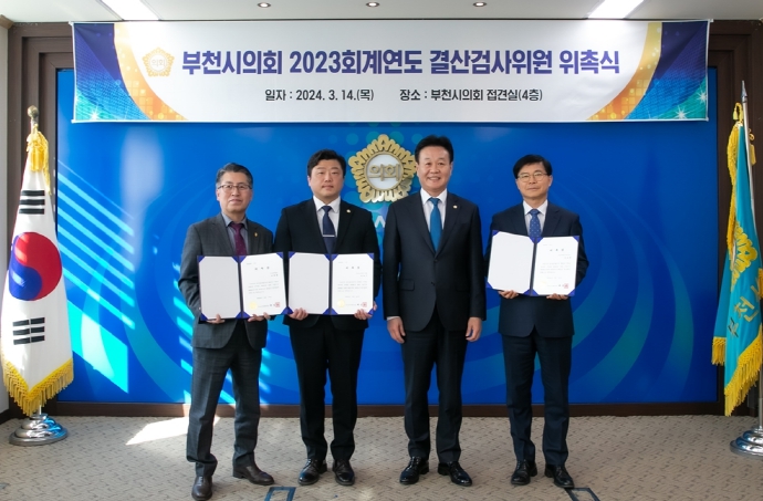 [뉴스서울] 부천시의회는 14일 의회 접견실에서 2023회계연도 결산검사위원에게 위촉장을 수여했다.