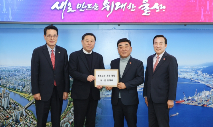 이 자리에서 김두겸 울산시장은 노선 개편 관련된 불편민원에 대한 구군의 의견을 청취하고, 이에 대한 조치 사항과 향후 추진 방향을 논의하는 시간을 가졌다.