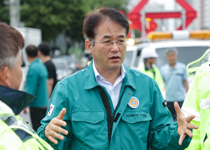 [뉴스서울] 이동환 고양특례시장은 17일 오전 덕이동 도로 침수현장을 살펴보고 신속한 대응과 시민피해 최소화를 지시했다.