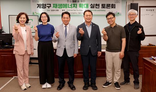 이번 토론회는 김경식 의원의 주재로 탄소중립을 위한 재생에너지 확대를 위한 전문가들의 의견을 청취하는 시간을 갖고 계양구 지역에너지 전환을 위한 정책을 논의했다.