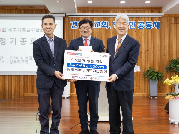 [뉴스서울] 부산 북구 기독교연합회와 부산성시화운동본부는 지난 8일 부산 북구에 온누리상품권 300만원을 기탁했다.