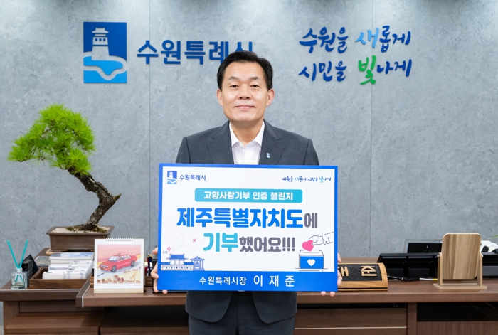 [뉴스서울] 이재준 수원시장이 ‘고향사랑기부 인증 챌린지’에 참여해 제주특별자치도에 고향사랑기부금을 기탁했다.