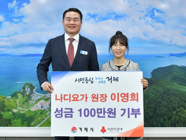 | ▲ 나디요가 이영희 대표, 개업 2주년 맞이 거제 이웃돕기 성금 100만원 기부 |