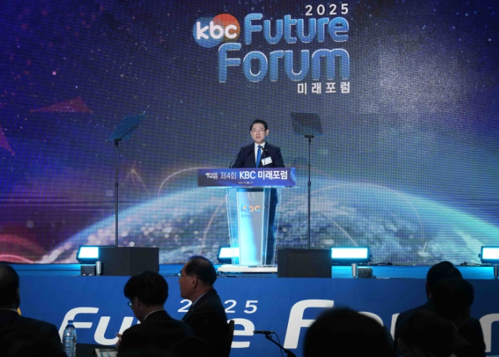 | ▲ 김영록 전라남도지사가 26일 여수 소노캄호텔에서 열린 ‘제4회 KBC미래포럼’ 행사에서 인사말을 하고 있다. |