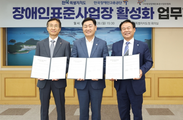 [뉴스서울] 전북특별자치도는 광역 지방자치단체로서는 최초로 한국장애인고용공단, (사)한국장애인표준사업장협회와 함께 장애인복지 증진 및 고용 확대를 위한 업무협약(MOU)을 체결했다.