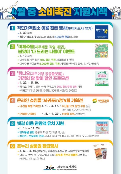 ▲ 제주도, 상품권·캐시백·쿠폰 등 4월도 소비 혜택 한가득 |