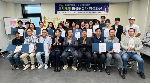 [뉴스서울] 영천시는 지난 17일 시민 33명이 참석한 가운데 도시재생 주민역량 강화사업의 일환인 도시재생 투어 프로그램 및 마을해설가 양성 교육의 수료식을 개최했다.