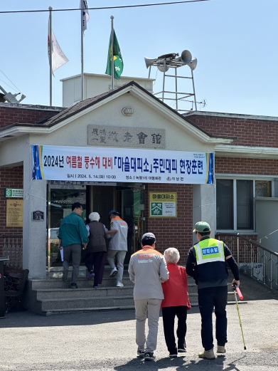 ▲ 청도군, 여름철 풍수해 대비 마을대피소 주민대피 및 복구 현장 훈련 실시 |