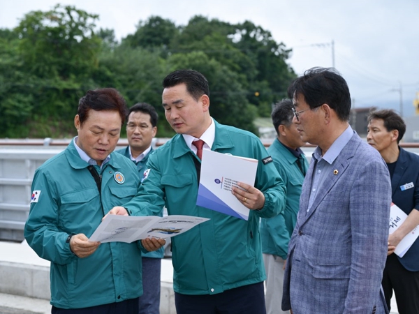 ▲ 박완수 경남도지사, 여름철 자연재난예방을 위한 거제시 둔덕면 학산지구 현장방문 |