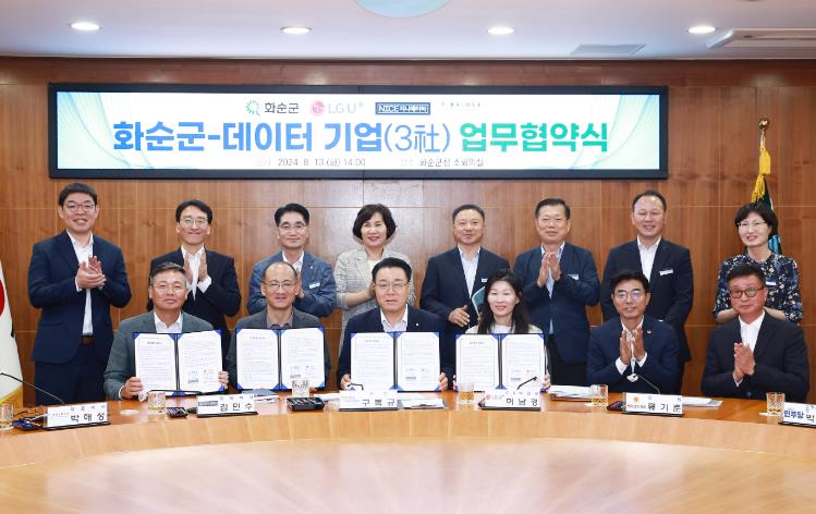 [뉴스서울] 화순군은 지난 13일 군청 소회의실에서 ㈜LG유플러스, NICE지니테이타㈜, ㈜티브릿지코퍼레이션 등 국내 최고의 데이터 관련 선도기업 3사와 '도시데이터 기반 화순군 현안과제 해결'을 위한 업무협약을 체결했다고 밝혔다.