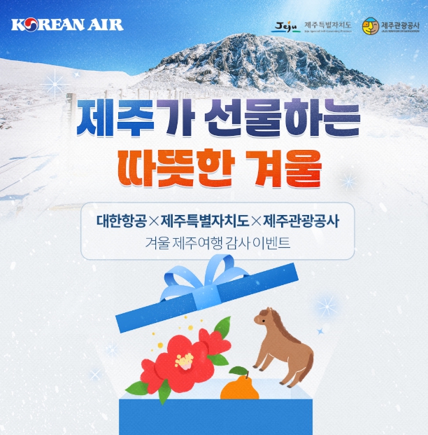 [뉴스서울] 제주특별자치도와 제주관광공사는 대한항공과 함께 ‘제주가 선물하는 따뜻한 겨울’ 프로모션을 진행한다고 밝혔다.