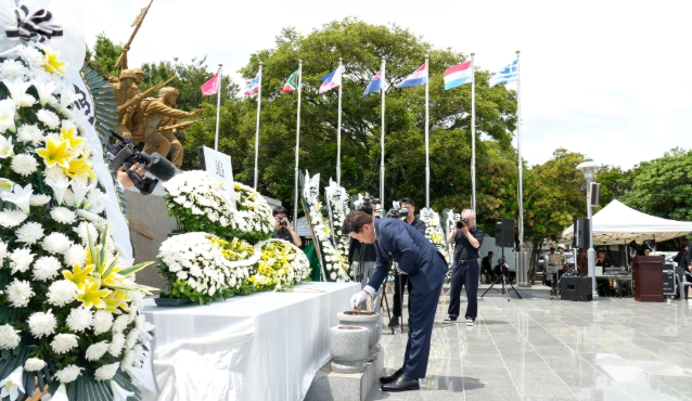 오영훈 지사는 추념사를 통해 “제주 출신 호국영령들의 숭고한 희생정신을 깊이 기리며 영면을 기원한다”며 “지금 우리가 누리는 일상의 평화는 그들의 용기와 헌신 위에 세워졌음을 기억하고, 제주도정은 그 뜻을 계승해 보훈 인식 확산과 보훈 가족의 삶의 질 향상에 최선을 다하겠다”고 강조했다.