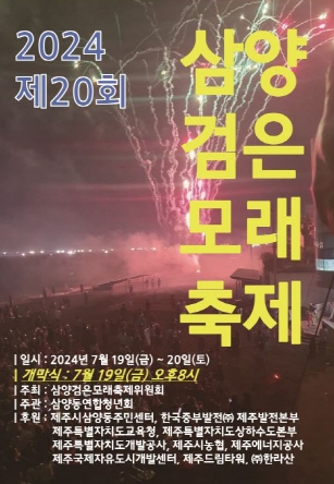 올해로 20회를 맞이하는 삼양검은모래축제는 삼양검은모래축제위원회가 주최하고, 삼양동연합청년회의 주관으로 진행된다.