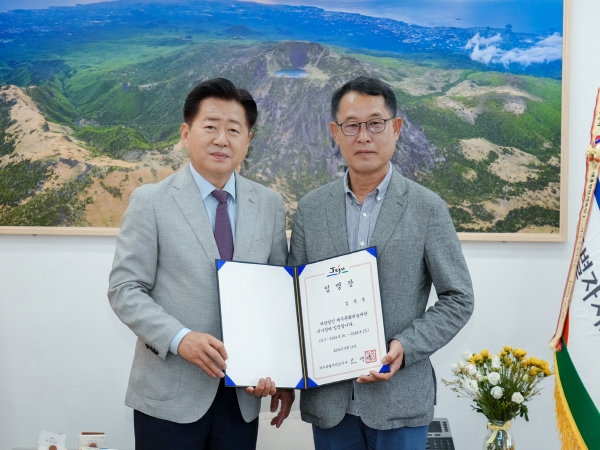 오영훈 제주도지사는 이날 오전 도청 집무실에서 김석윤 신임 이사장에게 임명장을 수여했다.