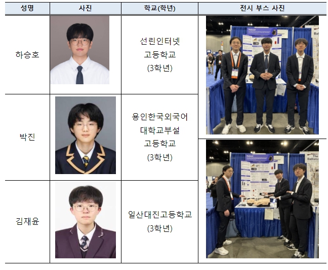 [뉴스서울] 과학기술정보통신부는 미국 로스앤젤레스에서 개최된 2024년 국제과학기술경진대회(International Science and Engineering Fair, ‘ISEF’)에 한국 대표로 참가한 하승호(선린인터넷고등학교 3학년), 박진(용인한국외국어대학교부설고등학교 3학년), 김재윤(일산대진고등학교 3학년) 학생의 ‘실시간 CPR(심폐소생술) 시청각 피드백 시스템’ 작품이 내장형 시스템(Embedded Systems) 분야에서 5월 17일 본상 2등상을 수상했다고 밝혔다.