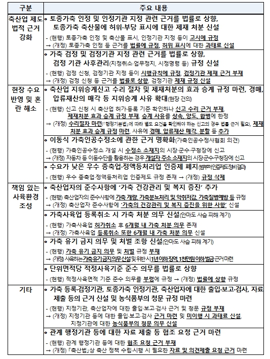 | ▲ 「축산법」 일부개정법률안 내용(요약) |