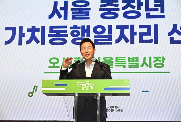 이날 오 시장은 ‘보람일자리’의 이름을 중장년층의 경험과 역량으로 서울시 전체에 긍정적인 가치를 더하는 사업으로 위상을 새롭게 하기 위해 ‘서울 중장년 가치동행일자리’로 변경해 선포했다.
