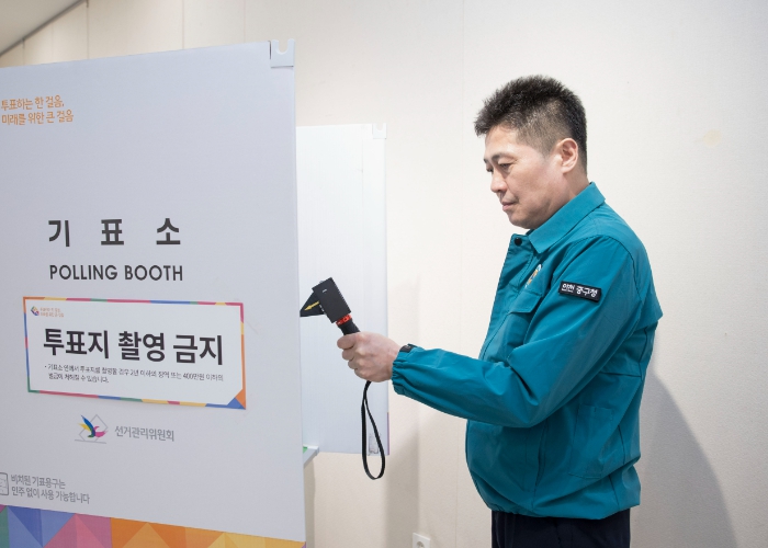 이날 김정헌 구청장은 사전투표소 설비상황과 안전사고 예방 관련 준비 상황을 점검하고 직접 불법 카메라 탐지기를 활용해 투표소 내 불법 카메라 설치 여부를 살폈다. 아울러, 선거사무 직원들에게 주민들이 안심하고 선거에 참여할 수 있도록 완벽한 준비를 당부하고 격려했다.