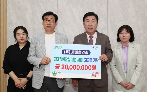 [뉴스서울] ㈜새마을건축은 11일 청주시청을 찾아 주거취약계층의 재래식화장실 개선 사업을 위해 사용해 달라며 청주시에 2천만원을 기탁했다.