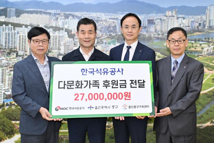 한편, 한국석유공사는 2021년부터 저소득 다문화 가족 복지 향상을 위해 매년 울산중구가족센터에 후원금을 전달하고 있다.