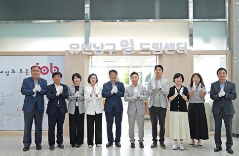 유엔남구 일드림센터는 기존 구청과 동 행정복지센터에 분산되어 운영하던 일자리정보센터를 통합‧확장하여, 취업을 원하는 주민과 구인하는 기업 간 허브역할을 강화하고자 개소 날짜를 19일로(일‘1’을 구‘9’해드린다)로 정했다.