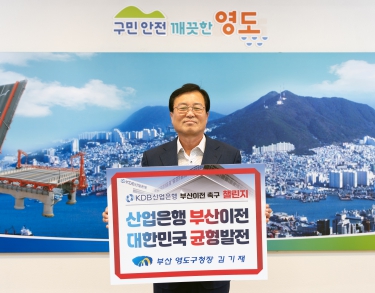 조병길 사상구청장의 지명으로 챌린지에 참여한 김기재 구청장은“부산 지역 경제 활성화와 국가균형 발전을 위한 중요한 정책과제인 산업은행의 부산 이전을 이루어 낼 수 있도록 영도구도 힘을 모을 것이다.”라고 말했다.