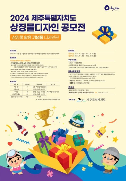 ‘지속가능한 제주다움을 디자인하다’를 주제로 한 이번 공모전은 제주도를 대표하는 상징물을 활용해 제주의 역사, 문화, 관광 등 다양한 모습을 다채롭게 표현한 작품을 공모한다.
