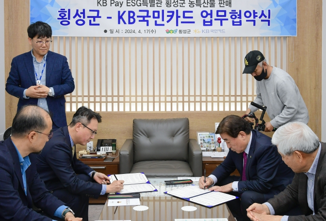 이를 위해 횡성군과 KB국민카드는 4월 17일 횡성군청에서 김명기 군수와 KB국민카드 이호준 전무, 횡성 축산업협동조합 엄경익 조합장, 하심정 횡성더덕 최기종 대표 등이 참석한 가운데 KB Pay 쇼핑을 통한 횡성군 특산품 판매를 지원하는 업무협약을 체결했다.