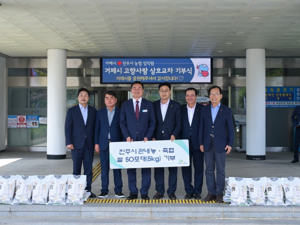 특히 진주시 관내 농협 11개소에서 거제시 희망복지재단에 쌀 250kg도 람께 기부하며 고향사랑에 더해 따뜻한 이웃사랑까지 함께 전달했다.