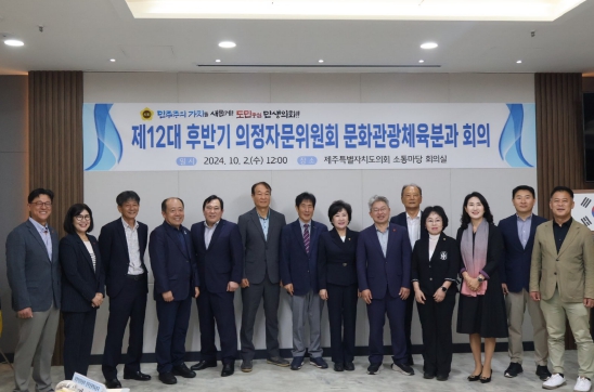 [뉴스서울] 제주특별자치도의회 문화관광체육위원회는 2일 12시 도의회 의사당 소통마당회의실에서 상임위 도의원, 의정자문위원 등이 참석한 가운데 제12대 후반기 의정자문위원회 문화관광체육분과 첫 회의를 개최했다.