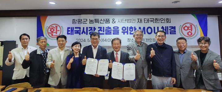 [뉴스서울] 전남 함평군이 사단법인 재태국한인회와 우수 함평 농특산품의 태국시장 진출 협력을 위한 MOU를 체결했다.