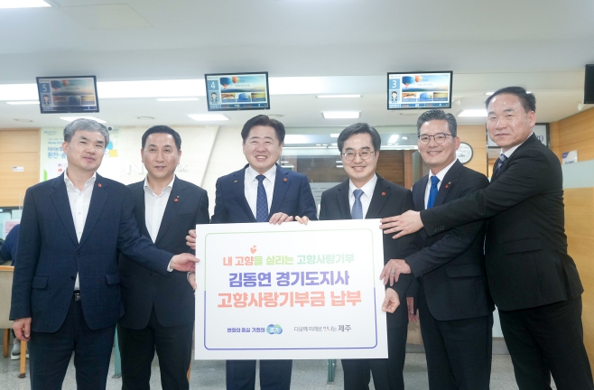 이날 기탁 행사에는 오영훈 제주도지사와 김동연 경기도지사를 비롯해 윤재춘 농협중앙회 제주본부장, 고우일 농협은행 제주본부장 등 농협 관계자들이 참석해 양 지역의 고향사랑기부를 더욱 활성화해 나가자는데 뜻을 모았다.