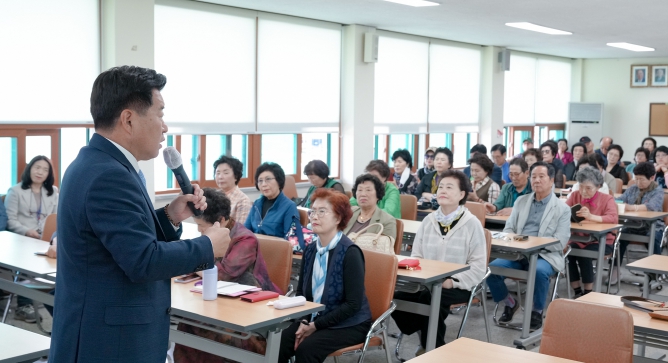 오영훈 지사는 20일 오전 10시 제주시노인복지회관에서 제주시 노인대학 1학년 신입생 80명을 대상으로 복지정책을 비롯한 민선8기 도정의 핵심 정책을 공유했다.