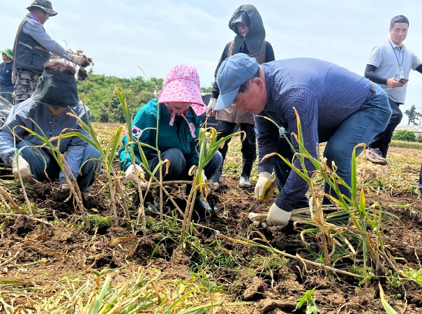[뉴스서울] 김애숙 제주특별자치도 정무부지사는 20일 제주도농업인단체협의회의 마늘 수확 봉사활동에 참여해 참석자들을 격려하고 현장 간담회를 개최했다.
