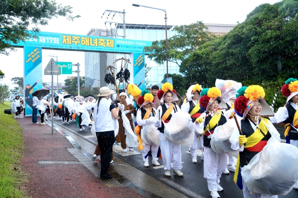 [뉴스서울] 제17회 제주해녀축제가 ‘하나된 해녀, 세계로 뻗어가는 숨비소리’라는 슬로건 아래 21일부터 22일까지 해녀박물관 일원에서 개최됐다. 궂은 날씨에도 불구하고 제주 및 전국 해녀, 도민, 관광객 등 2만 5,000여 명이 참가해 성황을 이뤘다.
