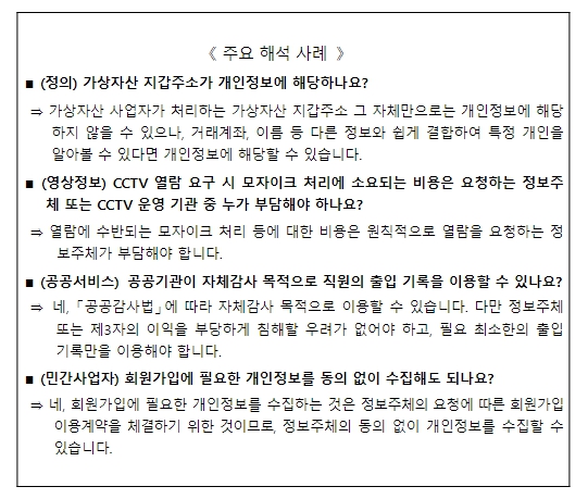 개인정보위는 출범 이후 매년 개인정보 보호법령 해석에 대한 공공기관 및 국민신문고 질의 중 대표사례를 선별하여 '표준 해석례(’21~’23)', '주요 이슈 법령 해석 사례집(’22~’23)' 등의 사례집을 발간해왔다.