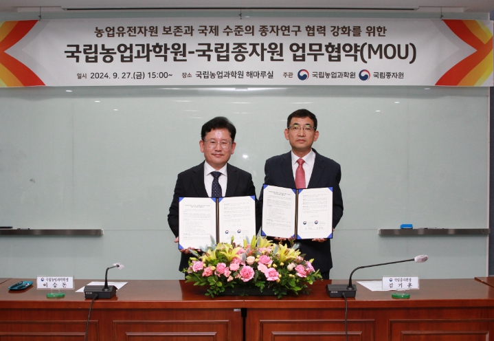 [뉴스서울] 국립종자원은 농촌진흥청 국립농업과학원과 9월 27일, 농업유전자원 보존 및 세계 수준 종자 연구의 지속적인 협력을 위해 국립농업과학원(전북 완주 소재)에서 업무협약을 체결했다.