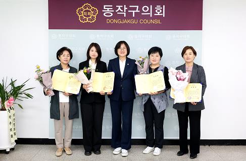 이미연 의장은 “동작구의 발전을 위해 솔선수범해 주신 수상자 분들께 진심으로 감사드린다”며, “우리 의회도 수상자 분들의 봉사정신을 본받아 구민들 곁에서 복지 증진과 지역발전을 위해 최선을 다하겠다”고 말했다.