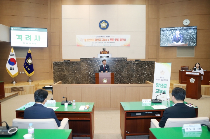 이날 행사에서는 제4대 이천시 청소년의원들에게 당선증과 배지를 수여하고 청소년의회 윤지선 의장, 이하린 부의장이 대표로 청소년헌장을 낭독했다.